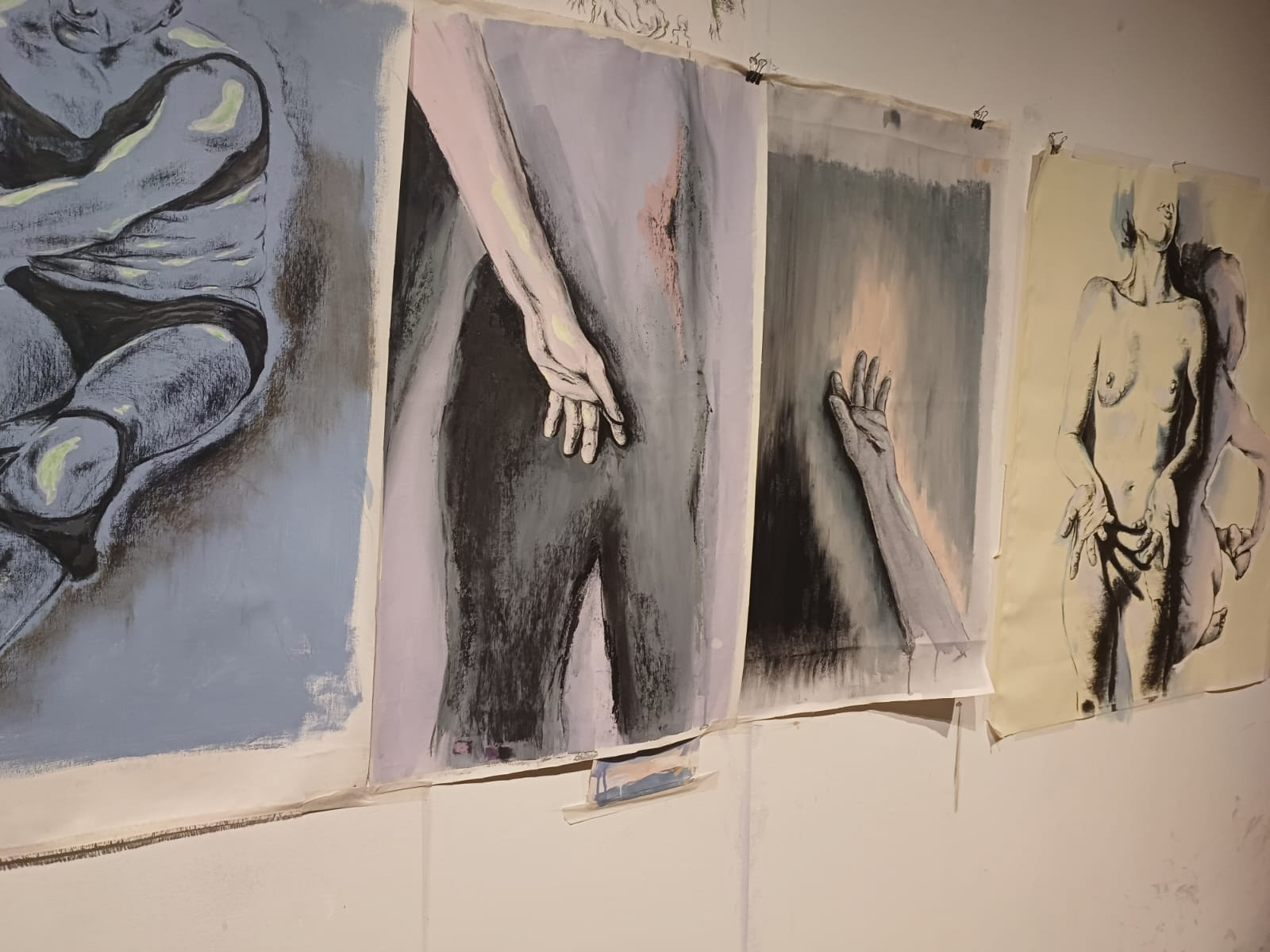 Sensível ao toque 39x74 cm. 2023 Acrílica, gesso, carvão vegetal e pastel oleoso sobre tela.